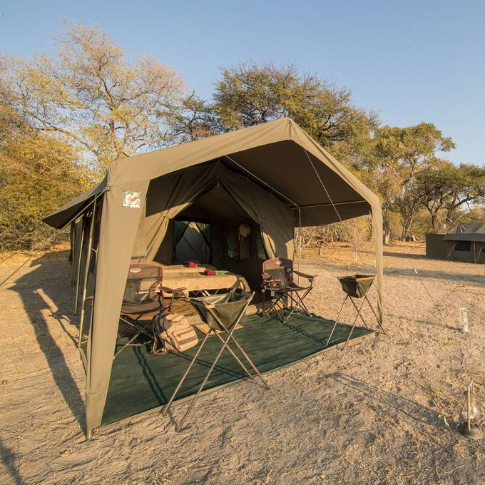 Arrive at Maun Airport and board a light aircraft for a low-altitude flight over the Okavango Delta — from the air, the waterways fan out below like veins on a leaf, a first glimpse of the wilderness, palm-fringed islands and open floodplains that define this UNESCO World Heritage Site. Land at the Xakanaxa airstrip and transfer to Camp Moremi, a classic tented safari lodge set beneath ancient ebony and jackalberry trees on the banks of the Xakanaxa Lagoon. Settle into your thatched suite, explore the elevated lounge and wildlife library, and take a dip in the secluded pool before heading out on your first afternoon game drive through the reserve’s mosaic of mopane woodland, open savannah and riverine forest. Return to Camp Moremi for dinner in the boma beneath a canopy of stars.