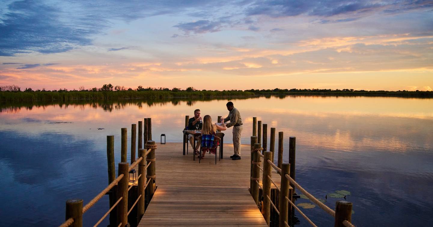 Another full day on Xugana’s private concession, with activities tailored to your interests. Speed things up with a motorboat excursion to more distant lagoons and channels, where elephant, hippo, crocodile and large herds of buffalo are regularly encountered. Or return to the mokoro for a more contemplative morning, perhaps with binoculars in hand to tick off some of the Delta’s 400-plus bird species. In the afternoon, another island walk offers the chance to encounter wildlife at ground level — from elephant and zebra to wild dog and the occasional leopard draped in the branches of a sausage tree. As the sun drops, gather around the fire-deck for stories, star-gazing and the soundtrack of the Delta after dark.