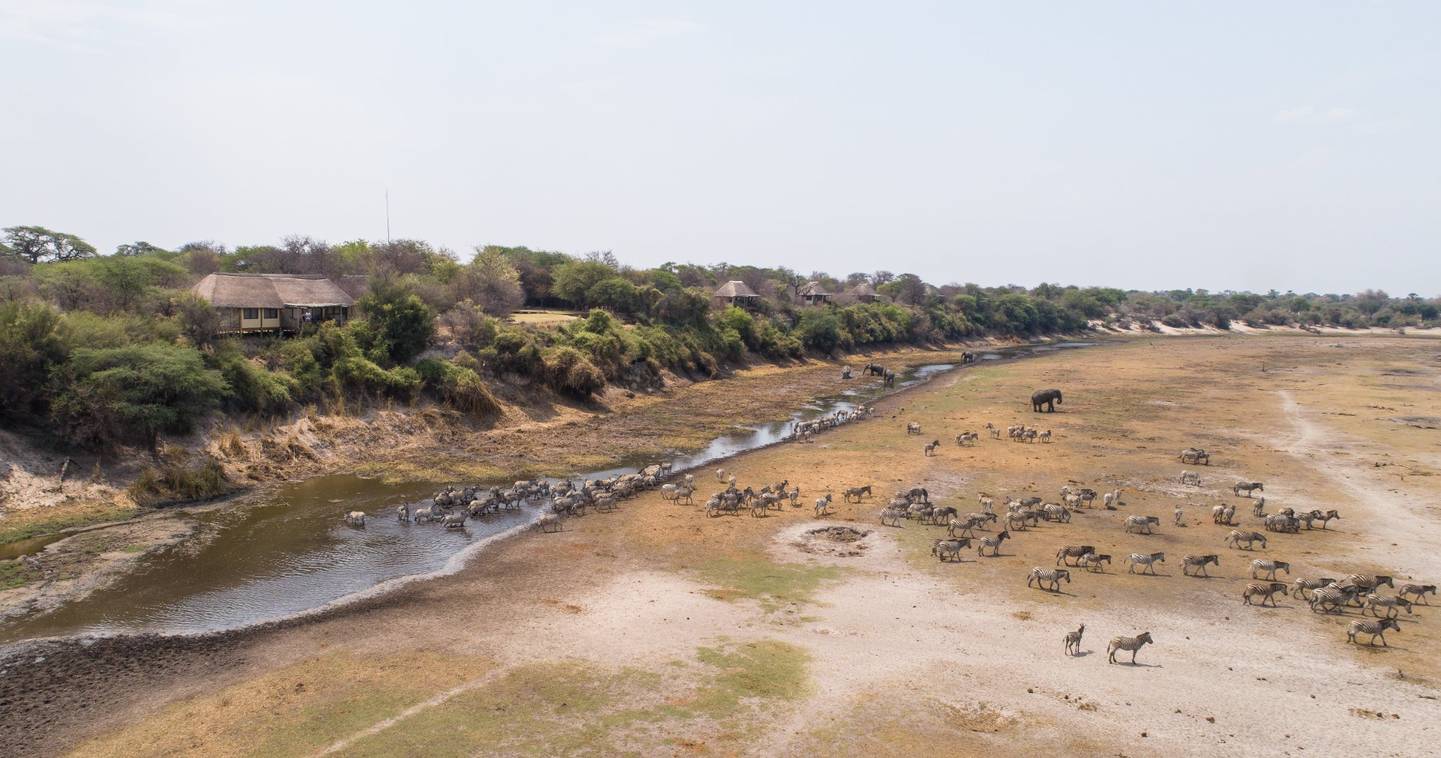 A full day in this starkly beautiful corner of Botswana. During the dry months, up to 30,000 zebra gather along the Boteti River in what is Africa’s second-largest mammal migration — a spectacle visible right from the lodge. Morning and afternoon game drives follow the river through the national park, where predator interactions are frequent: black-maned lion, cheetah and hyena shadow the herds. The lodge’s sunken game-viewing hide, built into the riverbank at water level, puts you eye-to-eye with drinking zebra and wading elephants — close enough to hear them breathe. For guests staying two nights, there is the option of a complimentary day trip to Nxai Pan and the ancient Baines’ Baobabs, or — between mid-June and October — a sleep-out under the stars on the vast, silent expanse of the Makgadikgadi Salt Pans. A cultural visit to nearby Khumaga Village can also be arranged. This evening, gather around the lodge’s bonfire overlooking the river for your final bush dinner.