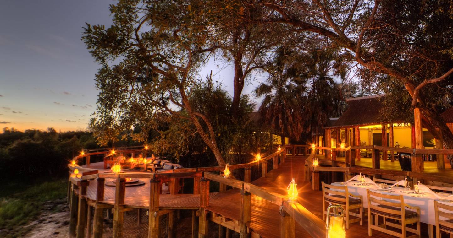 Today the perspective shifts from land to water. Head out by motorboat along the Khwai River and the sinuous channels feeding Xakanaxa Lagoon. From the water, the Delta reveals a different cast of characters — hippos surfacing between lily pads, Goliath herons stalking the shallows, malachite kingfishers darting from reed to reed. The birding here is superb, particularly during the summer months when migrant species are breeding. After brunch, the middle of the day is yours — sit on your private deck and watch the parade of animals at the water’s edge. In the afternoon, head out on a game drive to explore a different sector of the reserve before your final evening at Xakanaxa. Dinner is served by candlelight at the long communal table, lit by dozens of paraffin lamps.
