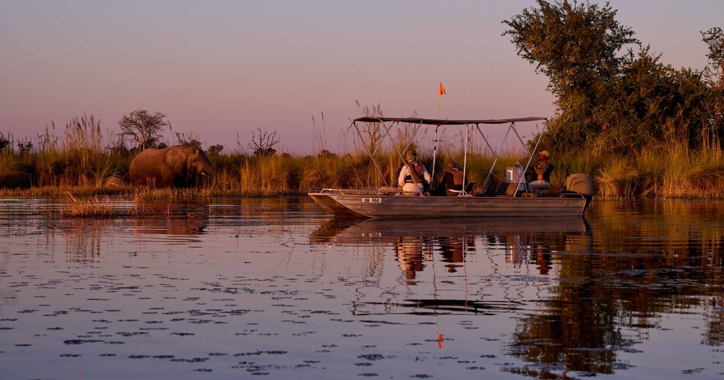 From the air, you watch Moremi’s golden grasslands dissolve into a maze of silver water — the permanent Okavango Delta spreading out beneath you like a living map. After a final morning activity and brunch at Camp Xakanaxa, your light aircraft carries you deeper into this watery wilderness to Camp Okavango on remote Nxaragha Island. Camp Okavango is a pure water camp — there are no roads, no vehicles, and no engine noise. Twelve safari suites sit on raised teak platforms connected by wooden walkways, with an infinity pool perched right on the edge of the swamp. After settling in, head out on a late afternoon motorboat excursion through the maze of channels. The birding here is outstanding — Pel’s fishing owl, malachite and pied kingfishers, wattled cranes and African jacanas are regularly sighted. Return to camp for a fireside dinner under the Delta sky.