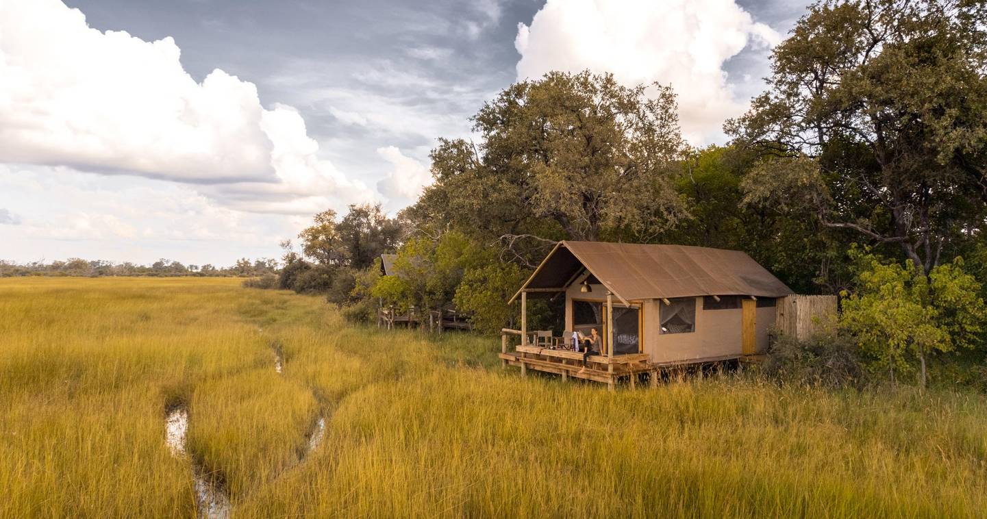 The mopane thins, the sky opens up, and suddenly the grasslands stretch to the horizon in every direction — the shift from Elephant Pan’s woodland to Little Sable’s open floodplains is one of the most striking transitions on any Botswana safari. A morning game drive from Elephant Pan doubles as your transfer south through the reserve to this intimate eight-tent camp. Raised on wooden platforms, each tent looks out across plains where lion, leopard and wild dog are regularly seen. An afternoon drive helps you get your bearings in this new corner of Khwai.