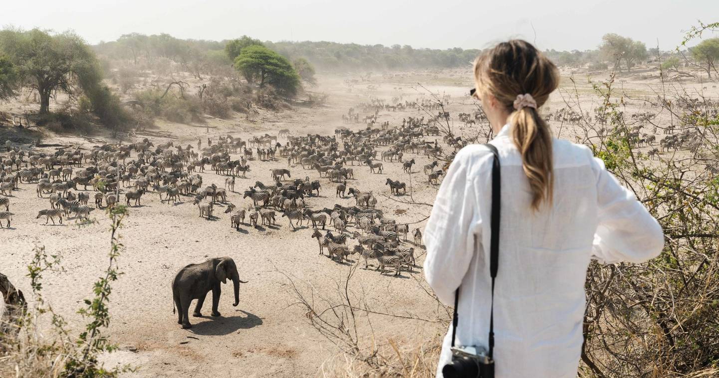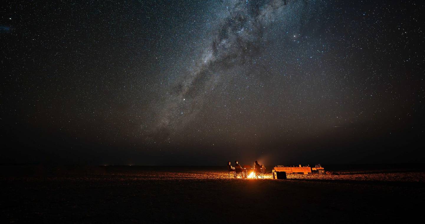 Dawn breaks over the Boteti and the cliff edge comes alive with birdsong — barred owls call from the mopane, and Verreaux’s eagle-owls watch from the branches above camp. Head out on a morning game drive into the national park, where desert-adapted species roam among ancient baobab trees and shimmering salt pans. Between April and November, the Boteti River draws Africa’s second-largest zebra migration — tens of thousands of animals converging in a spectacle of dust and stripes. Between drives, spend time in the floating photographic hide at river level for intimate, eye-to-eye encounters with elephant and other wildlife, or join a guided walk with the San Bushmen to learn the ancient art of desert survival. As evening falls, the camp fire and a canopy of stars provide the perfect end to the day.