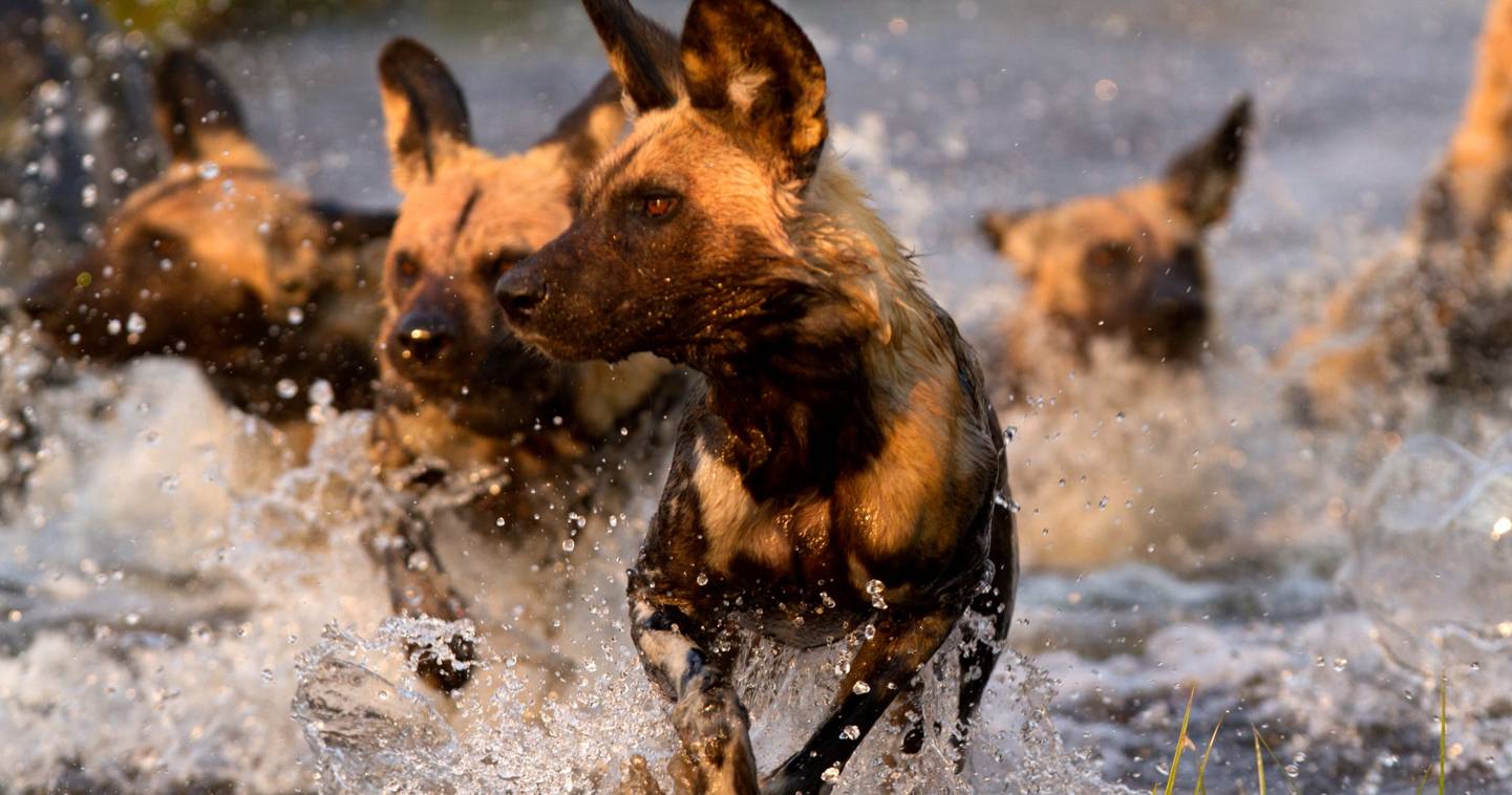 Xakanaxa sits at the junction of mopane woodland, open floodplain and the permanent waterways of the Okavango — a convergence that makes it one of the continent’s most consistently productive game-viewing areas. The resident buffalo herd here numbers several hundred animals, its range overlapping the territories of at least four lion prides. Wild dog are a daily possibility. Each morning begins at first light; afternoons bring a second game drive into different terrain. The birding is exceptional throughout: wattled crane and slaty egret work the lagoon edges, African skimmer and fish eagle patrol the open water, and dozens of raptor species move through the mopane canopy.