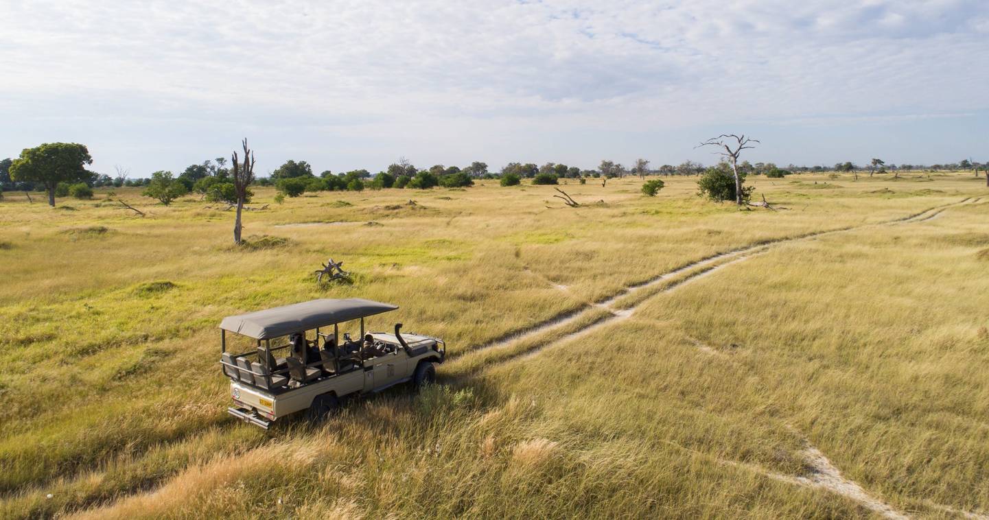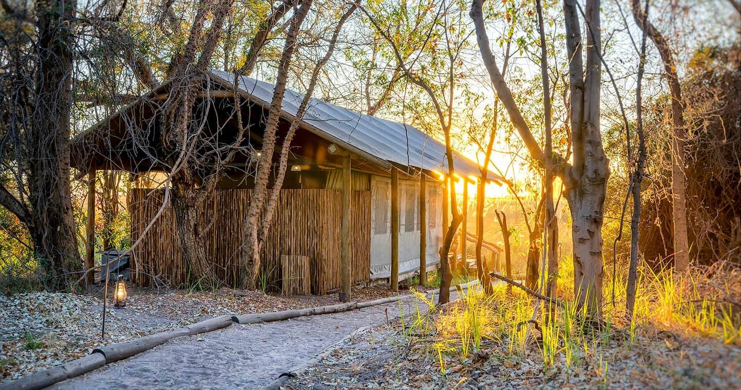Below the wing of your light aircraft, the broad Chobe floodplain gives way to dry Kalahari scrub — then, gradually, the landscape fractures into the braided channels, palm-studded islands and open lagoons of the Okavango Delta. After a morning activity and brunch at Chobe Game Lodge, a short flight from Kasane carries you into a different world entirely. Land at the Xakanaxa airstrip and transfer to Camp Xakanaxa, one of the oldest and most characterful camps in the region. The mood shifts palpably here — from the hotel-style comfort of Chobe to the canvas intimacy of a classic bush camp. Twelve Meru-style tents sit on raised decks along the Xakanaxa Lagoon, each with a private viewing deck overlooking the lagoon. Settle in, then head out on an afternoon game drive through Moremi’s mosaic of mopane woodland and open grassland — lion, leopard, elephant and wild dog all roam these plains.