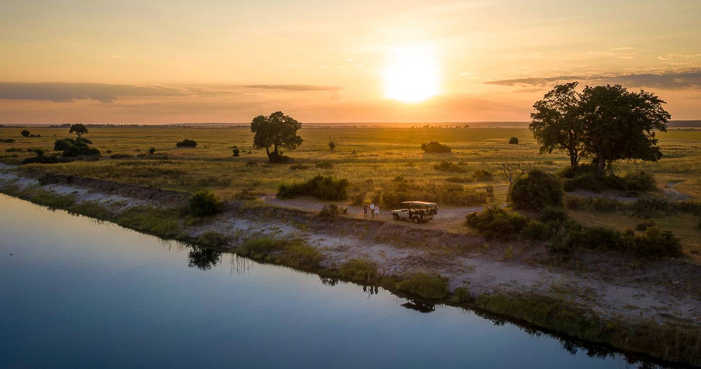 A full day to discover Chobe from every angle. Rise early for a game drive in one of the lodge’s whisper-quiet electric Land Rovers — being inside the park means the lodge’s vehicles are out before other operators arrive, a precious window of near-solitude with the wildlife. The Chobe riverfront supports staggering numbers of elephant, alongside lion, buffalo, giraffe, sable antelope and spotted hyena. Return for a late breakfast on the 250-metre boardwalk that stretches over the river, then spend the middle of the day as you wish — the pool, a spa treatment, or simply the view from your terrace. In the late afternoon, board a solar-powered boat for a sunset river cruise. This is Chobe at its most magical: golden light on the water, elephants silhouetted at the bank, and hippos surfacing in the shallows as the day fades.